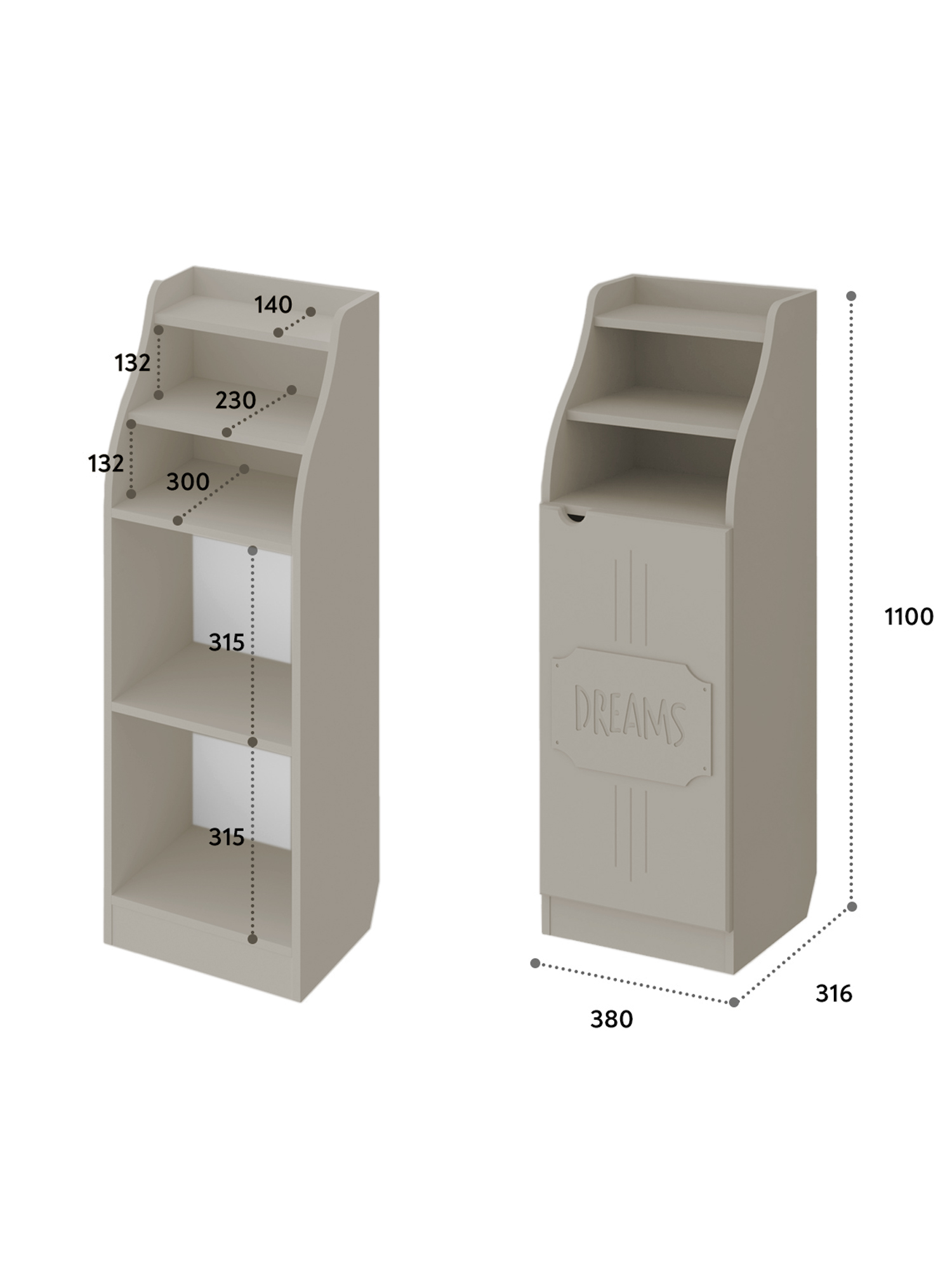 Шкаф ДримСтар ДС-63 прекрасно подойдет для вашей квартиры или загородного дома. Шкаф имеет две открытых верхних ниши и закрытые распашной дверцей полки внизу. Дверца крепится на петли с доводчиками.