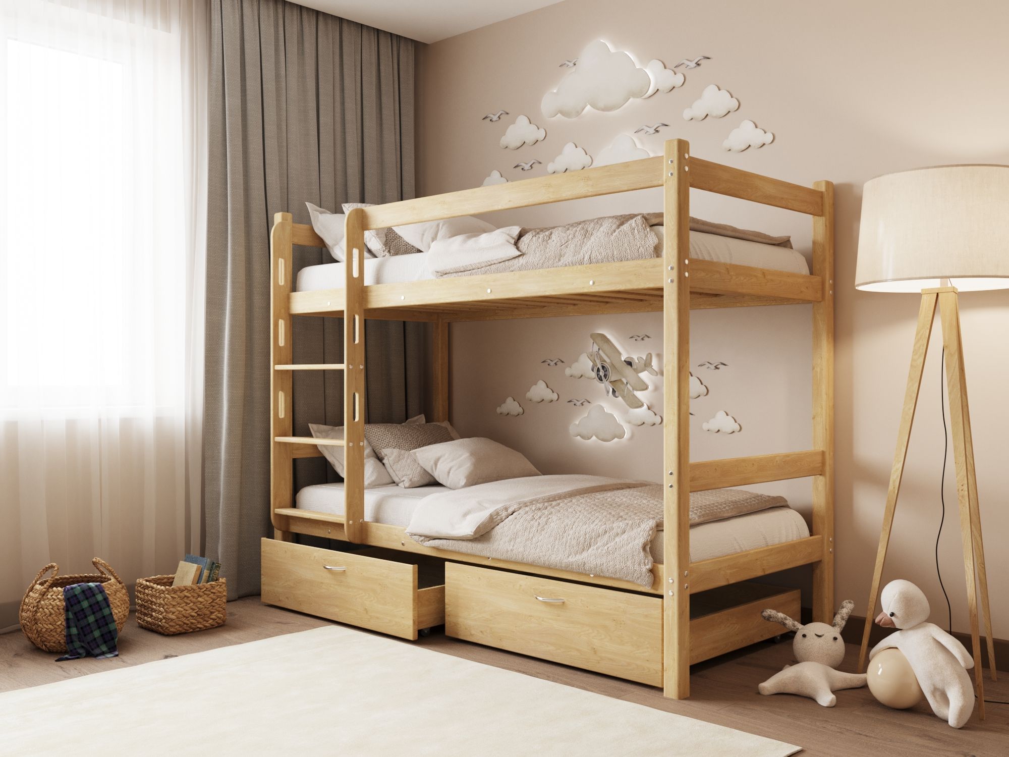 Прочная двухъярусная кровать «Мартина» изготавливается из массива дерева.