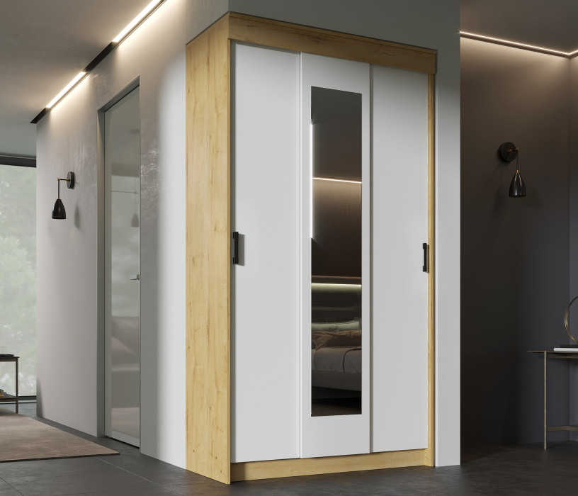 Шкаф-купе Эко с зеркалом шириной 1200 мм. Модель будет полезным элементом хранения вещей и одежды в спальне, гостиной, прихожей или квартире-студии.