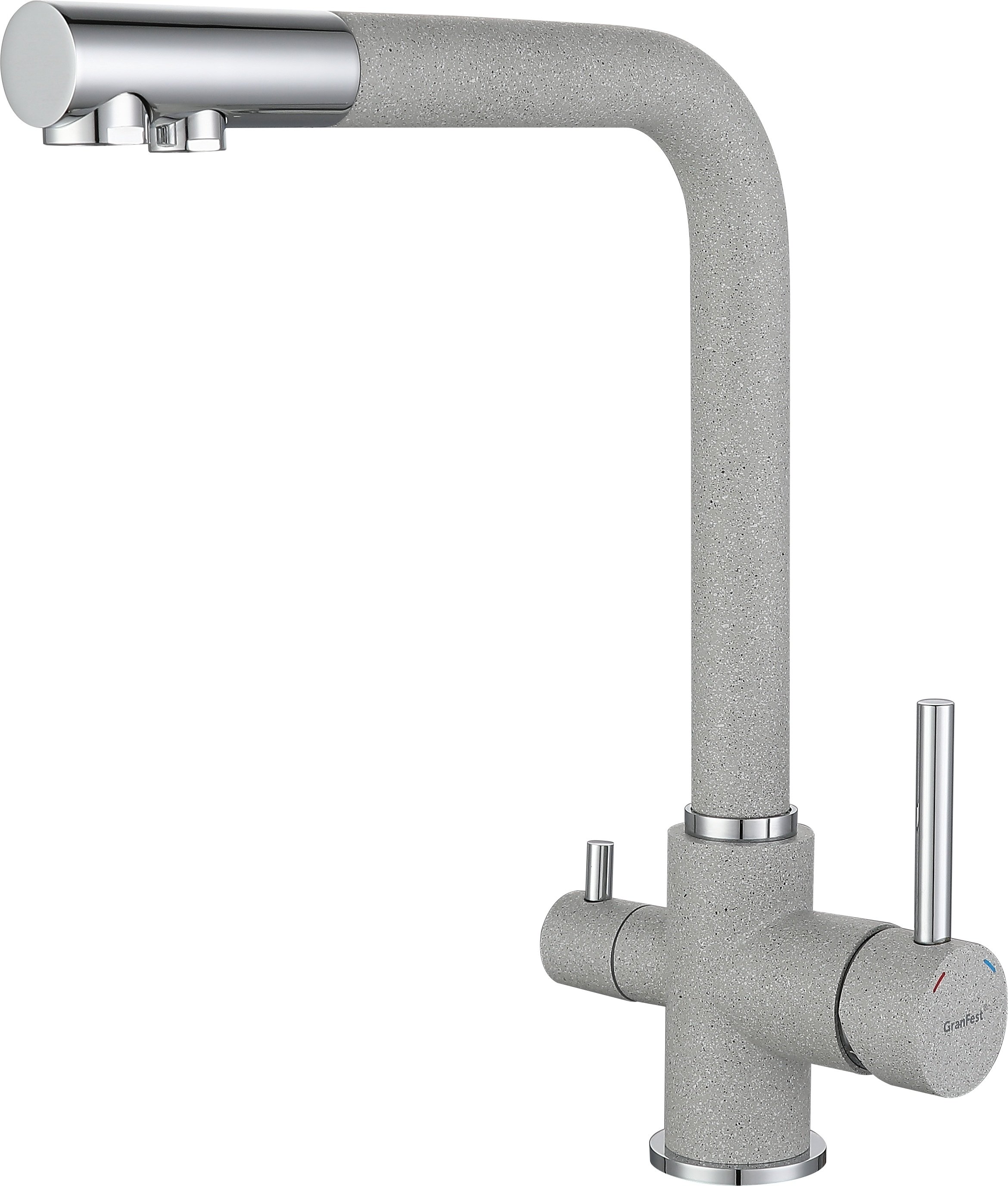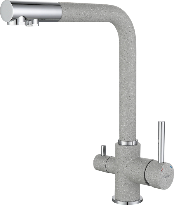 Смеситель GranFest для кухни Г-обр с краном питьевой воды (Серый)