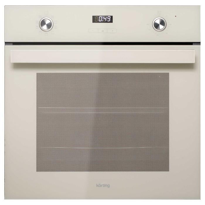 Духовой шкаф с электронным сенсорным управлением Touch Control, LED дисплей белого цвета Cold White, Утапливаемые поворотные регуляторы, 9 режимов работы, Одноуровневые телескопические направляющие, дверца духового шкафа с двойным остеклением, система автоматического охлаждения, Автоматическое отключение, Эмаль легкой очистки серого цвета, Каталитическая очистка, в комплекте: Противень для выпечки, глубокий противень, Хромированная решетка, цвет: бежевое стекло + стеклянная поверхность ручки двери в цвет духовки.