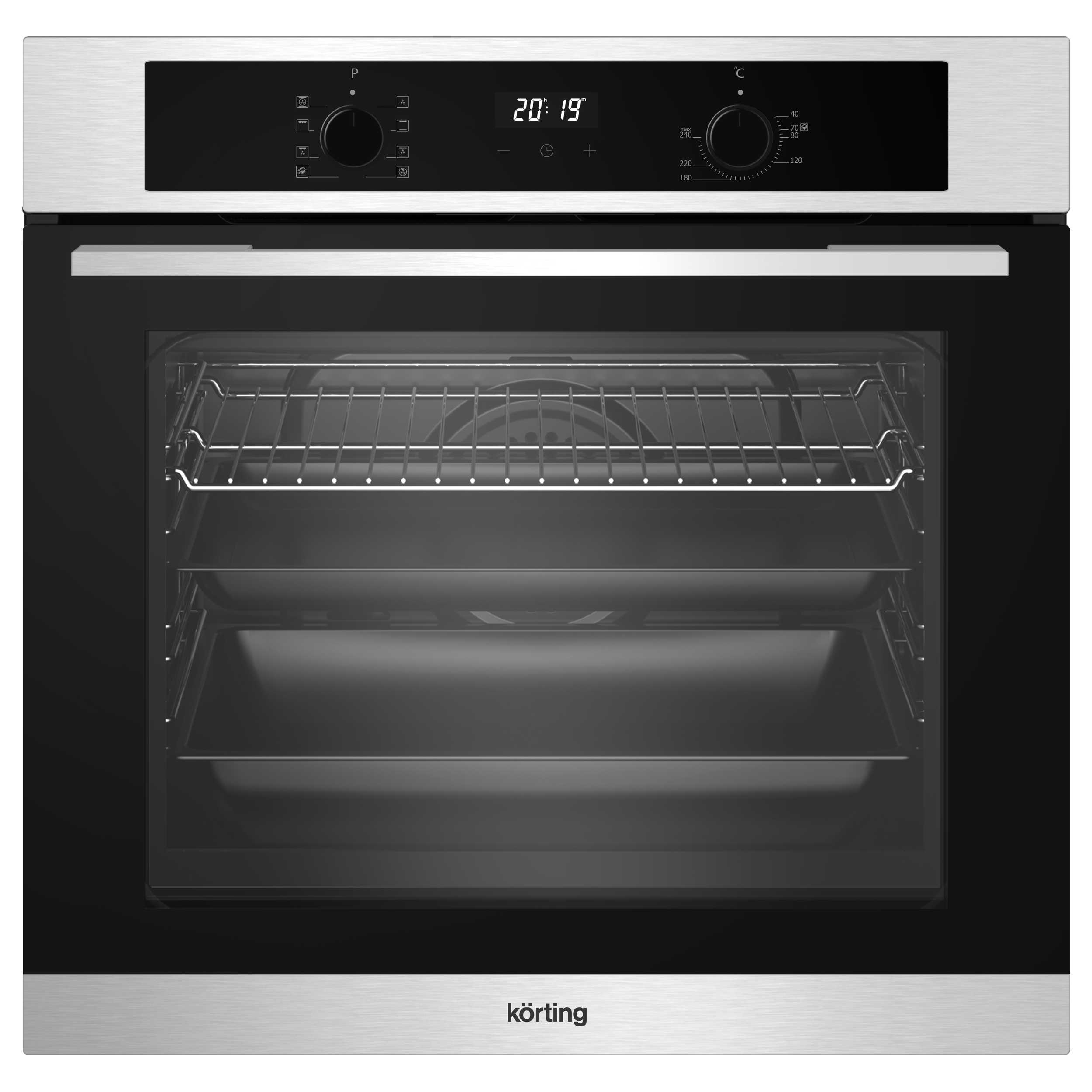 Духовой шкаф с электронным сенсорным управлением Touch Control, LED дисплей белого цвета Cold White, Утапливаемые поворотные регуляторы, 9 режимов работы, Одноуровневые телескопические направляющие, Дверца духового шкафа с двойным остеклением, Система автоматического охлаждения, Автоматическое отключение, Эмаль легкой очистки серого цвета, Каталитическая очистка, в комплекте: Противень для выпечки, глубокий противень, Хромированная решетка.