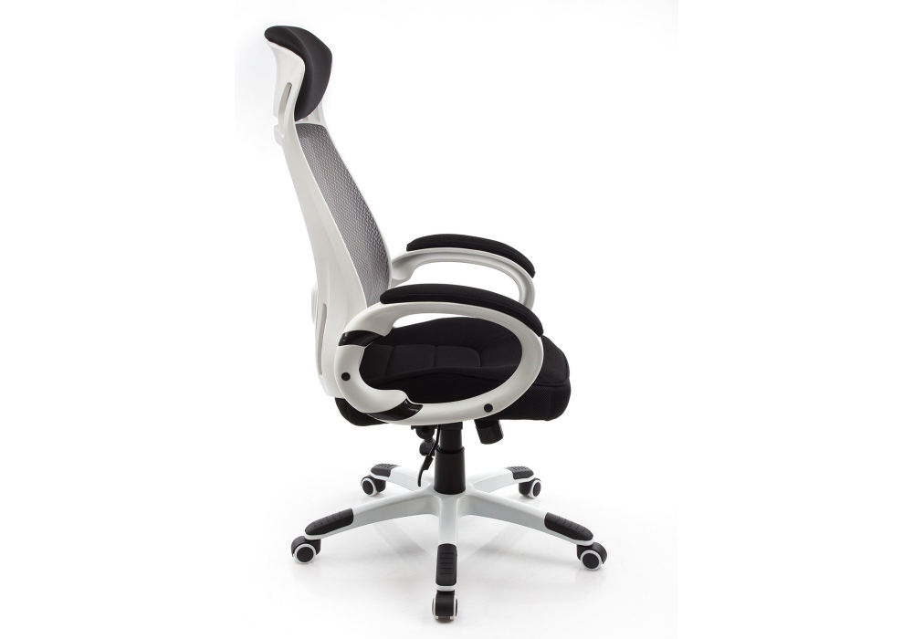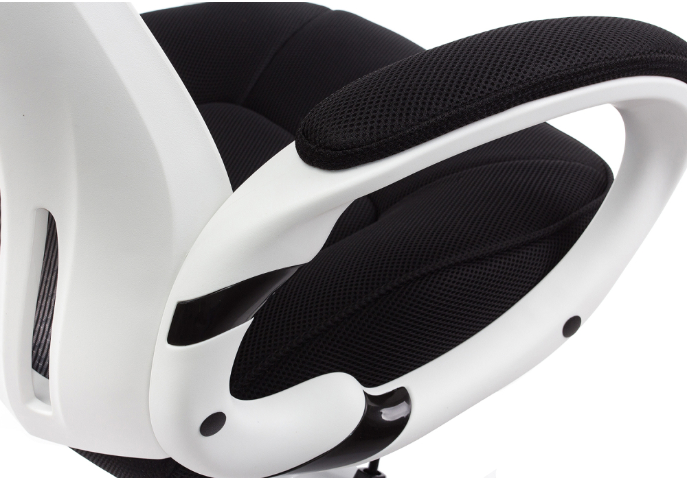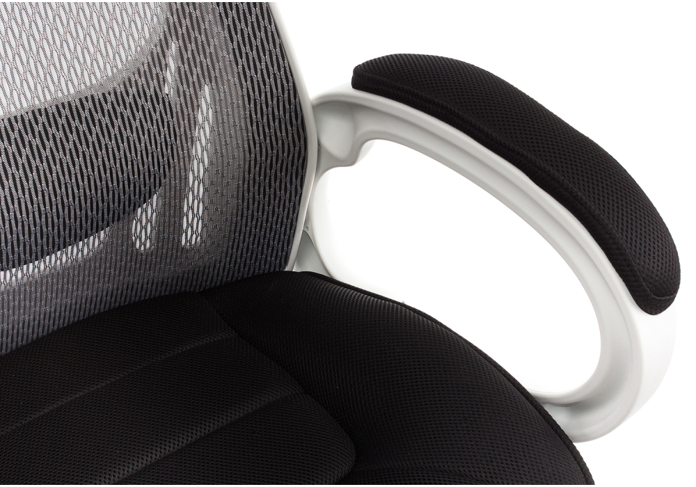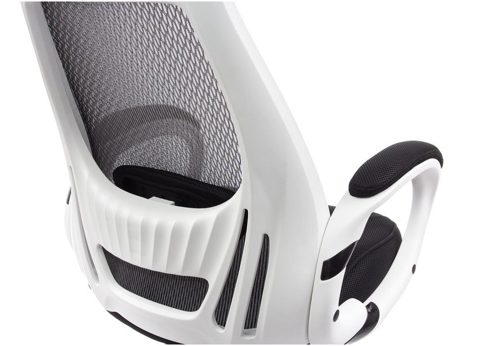 Материал каркаса - Пластик; Материал обивки - Сетка; Цвет каркаса - Белый пластик; Цвет обивки - Черный; Ширина - 69; Глубина - 69; Высота - 122; Ширина сиденья - 50; Глубина сиденья - 50; Высота сиденья - 49; Высота спинки - 73; Высота сиденья максимальная - 56; Высота максимальная - 129;