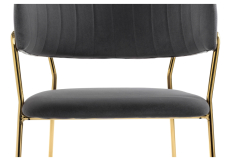 Высота подлокотников: 77 см. Материал каркаса - Металл; Материал сиденья - Велюр; Материал ножек - Металл; Материал обивки - Велюр; Цвет каркаса - Золотой; Цвет ножек - Золотой; Ширина - 57; Глубина - 54; Высота - 83; Ширина сиденья - 49; Глубина сиденья - 47; Высота сиденья - 46.
