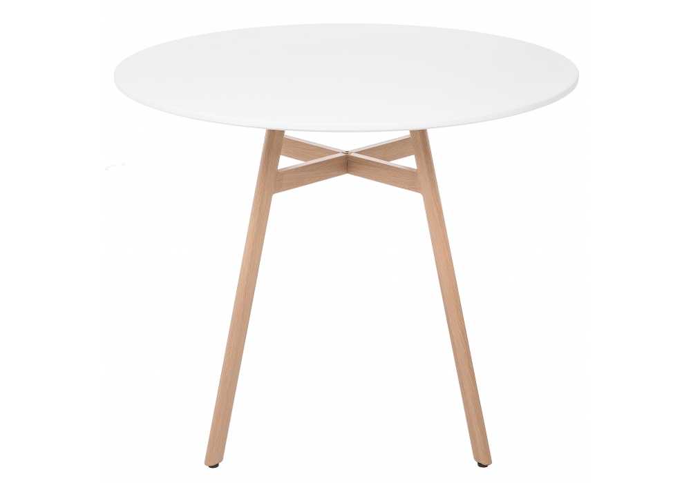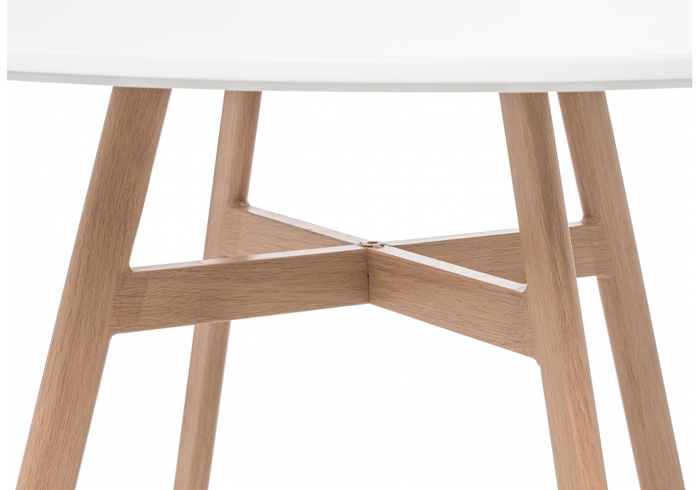 Ножки выполнены из металла, которые обтянуты пленкой с имитацией дерева. Материал каркаса - Металл; Материал ножек - Металл; Материал столешницы - МДФ; Цвет каркаса - Натуральный; Цвет ножек - Натуральный; Цвет столешницы - Белый; Ширина - 90; Высота - 73; Длина - 90.