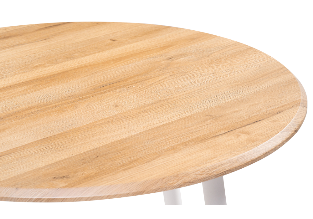 Толщина столешницы: 2,2 см. Материал каркаса - Металл; Материал ножек - Металл; Материал столешницы - МДФ; Цвет столешницы - Дуб вотан; Ширина - 90; Высота - 76; Длина - 90.