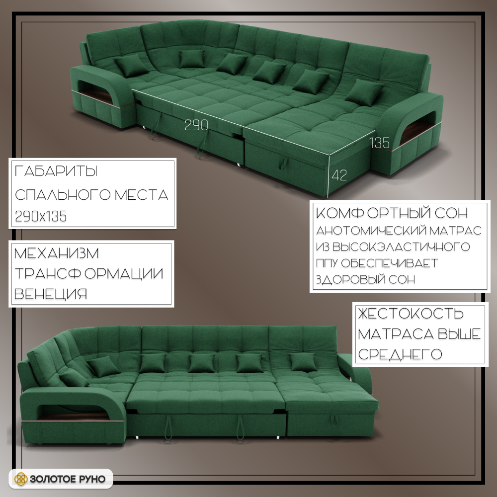 Отзывы о Столплит П-образный диван Майами-4 ППУ, велюр Зеленый