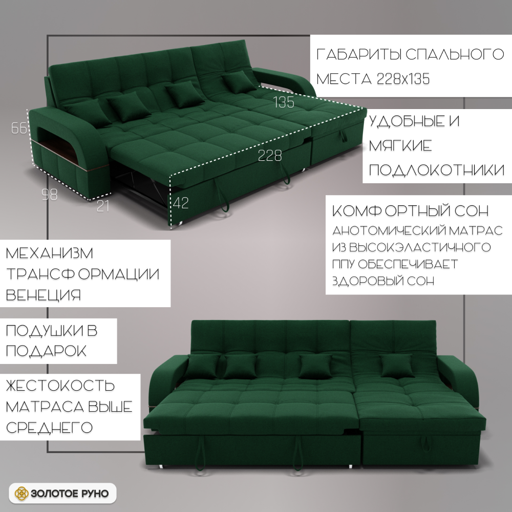 Отзывы о Столплит Угловой диван Майами-2 ППУ, велюр Зеленый