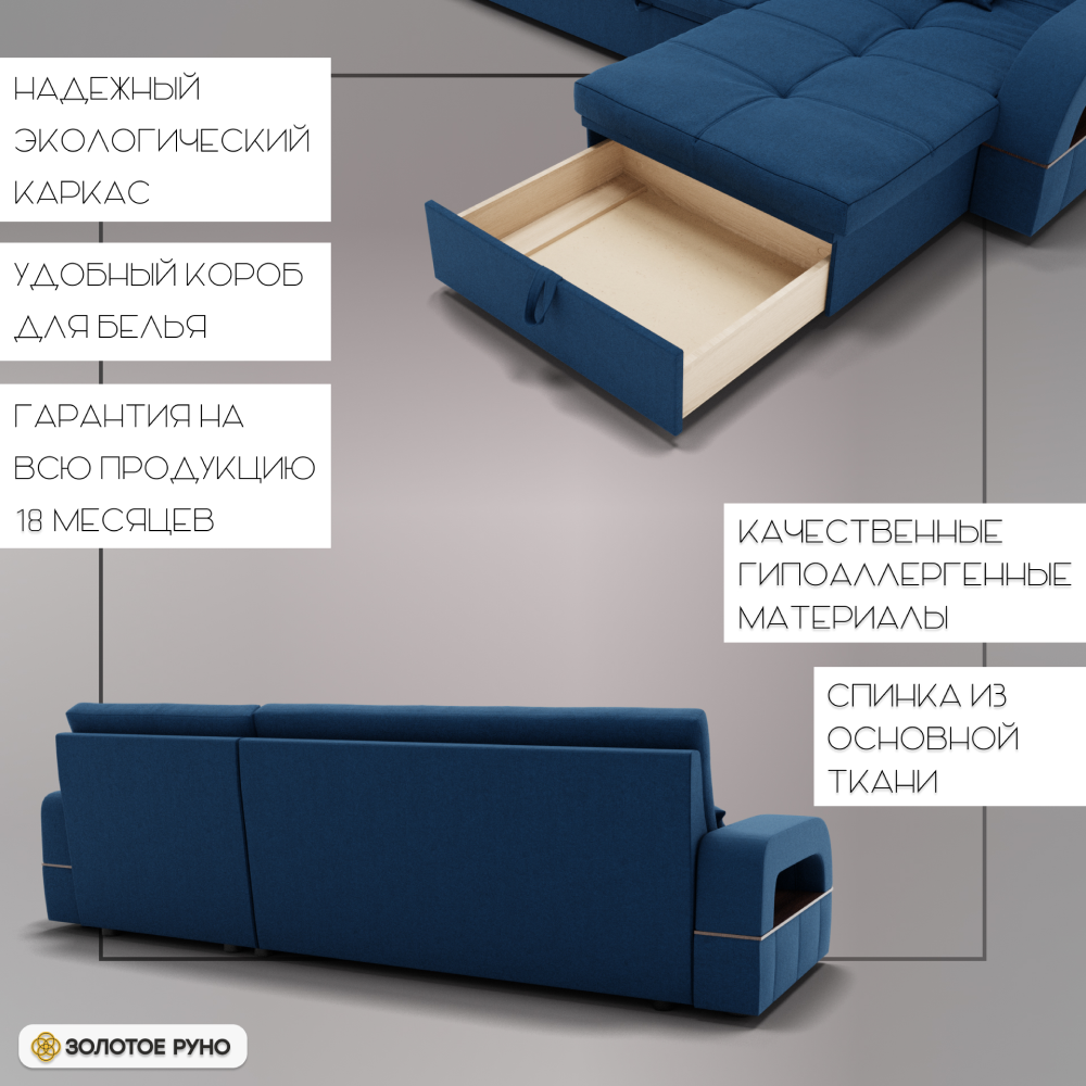 Отзывы о Столплит Угловой диван Майами-2 ППУ, велюр Синий