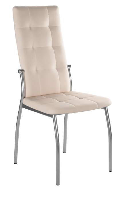 Каркас стула выполнен из металла, он разборный, но прост в сборке и надежен в эксплуатации. Обивка стула выполнена из экологичного кожзама на х/б основе. Наполнитель - ППУ. Габариты стула общие: Ширина 41 x Высота 99 x Глубина 44 см. Размер спинки: 60х45 см. Высота сиденья стула от пола 46 см.