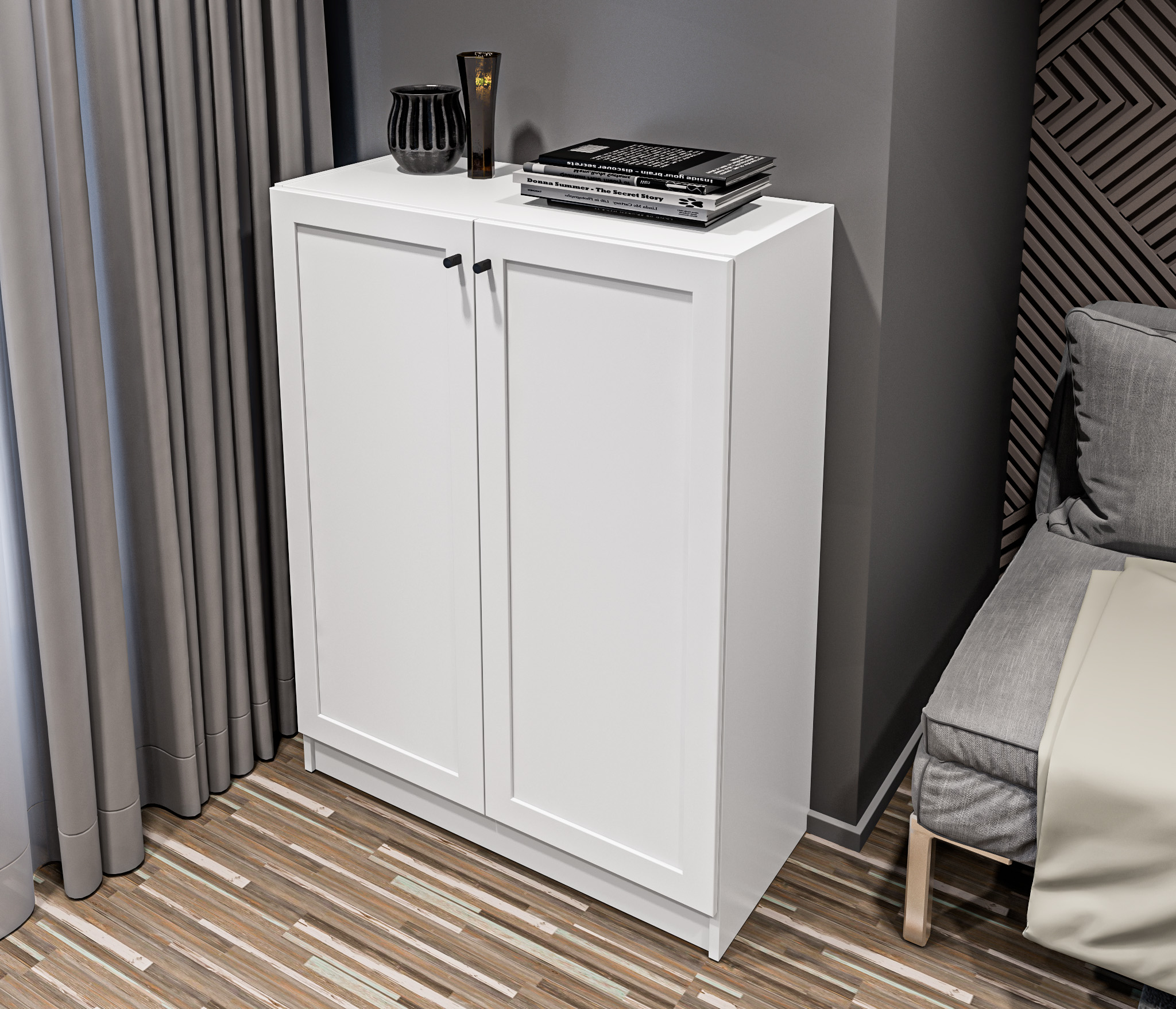 МС Твин предоставляет возможность собрать шкаф или стеллаж по своему вкусу. Вы сами выбираете размеры, цвет ручек: белый или черный, наполнение: ящик или полки. Помимо этого, вы можете решить, оставить фасады глухими или выбрать стеклянные, чтобы добавить прозрачности и легкости в ваш интерьер. Создайте шкаф-стеллаж, который идеально подходит для ваших потребностей и вписывается в ваш стиль.
