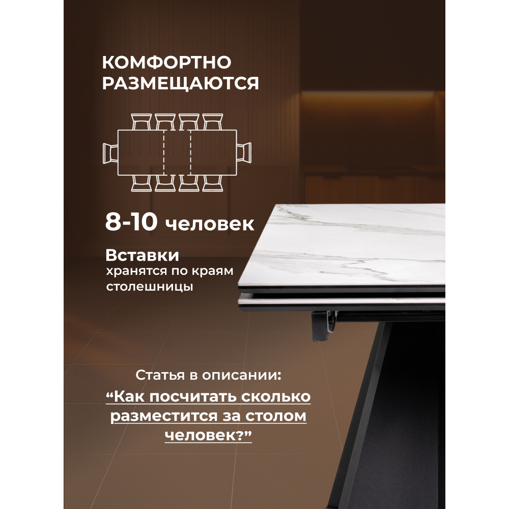 В целом, керамический стол Ливи сочетает в себе прочность, долговечность, эстетичный внешний вид и функциональность, что делает его отличным выбором для обустройства кухни или столовой.