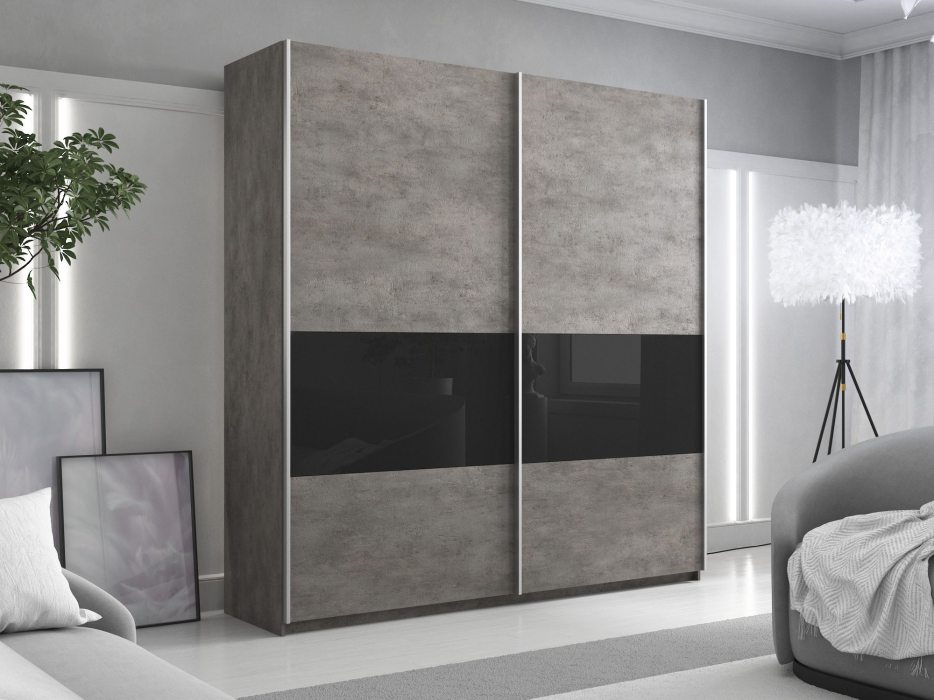 Шкаф-купе Прайм 2х дверный ДСП/Стекло черное 160х57х230 (Бетон)