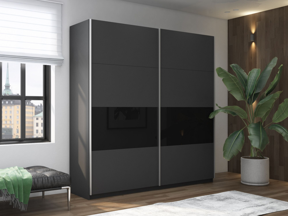 Шкаф-купе Прайм 2х дверный ДСП/Стекло черное 160х57х230 (Темно-серый)