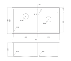 • Размеры мойки 780 x 430 мм