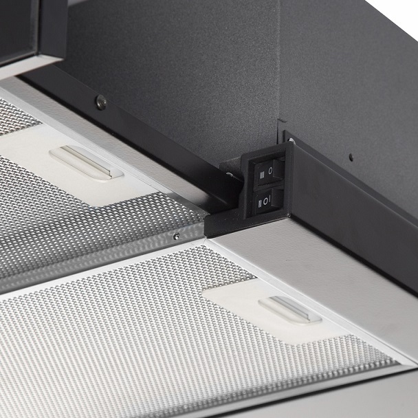 • Алюминиевые жироулавливающие фильтры полноразмерные, что гарантирует большую площадь захвата и поглощения загрязненного воздуха, копоти и жира во время готовки