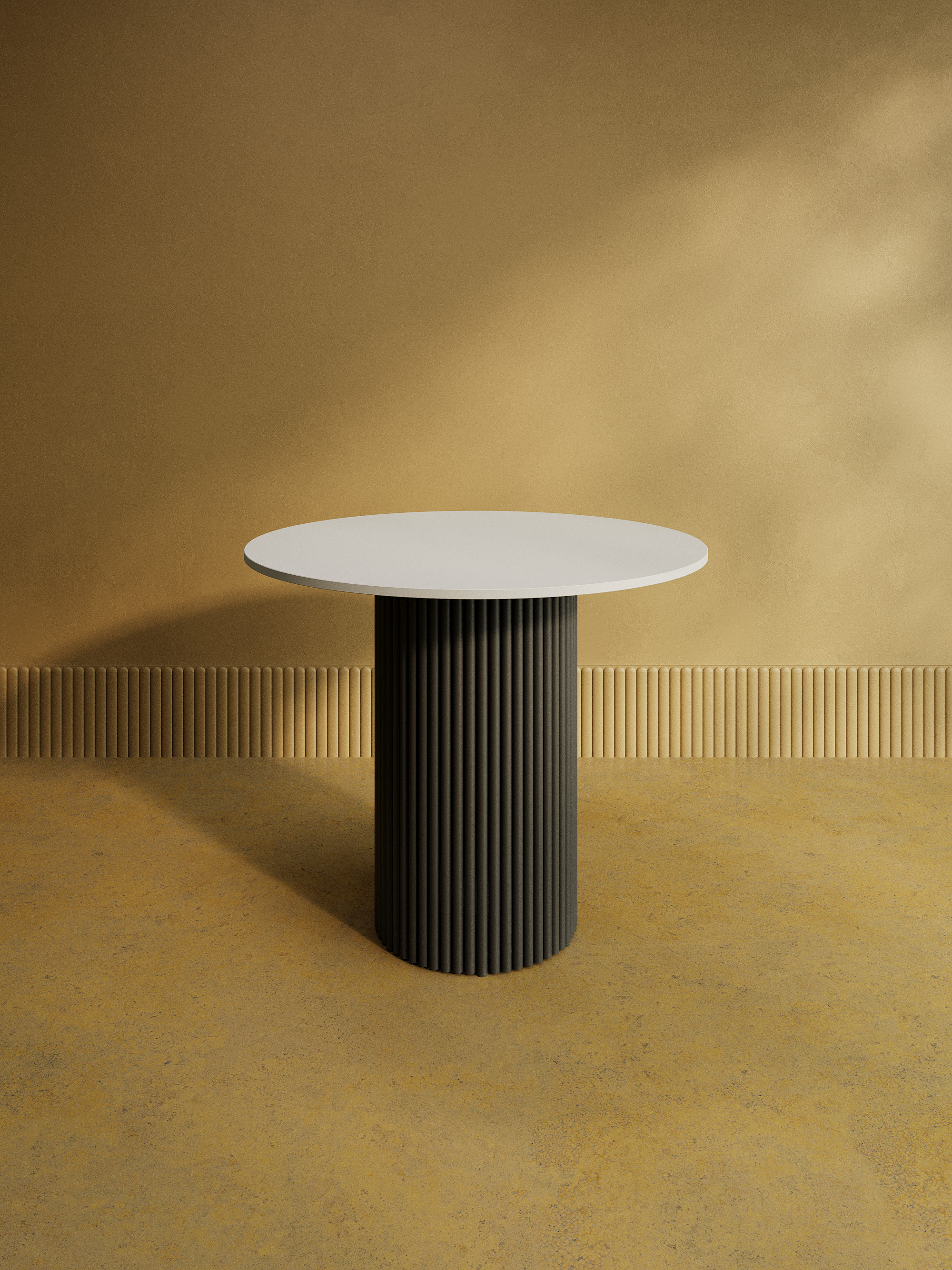 Дизайнерский круглый стол с металлическим трубчатым подстольем. Диаметр подстолья D400 мм. Столешница ЛДСП 16мм, диаметр D900 мм. Стандартный вариант - матовая порошковая окраска в чёрных или белых цветах. На заказ возможно изготовление столешницы ЛДСП в индивидуальном цвете и размере под заказ.