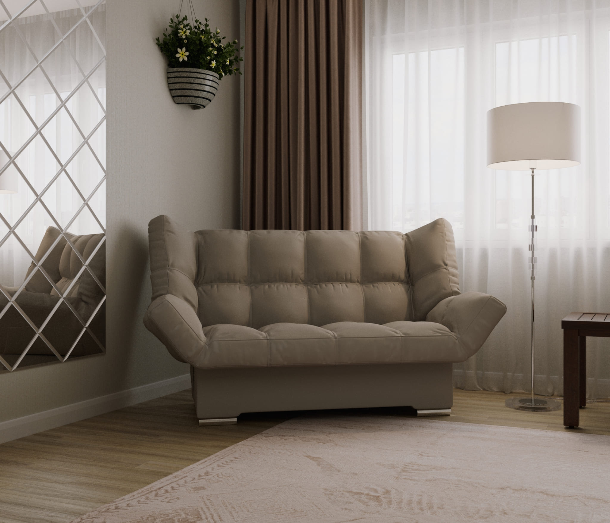 Современный и удобный диван-кровать с тремя возможными положениями вместо двух. Он отлично подойдет для современного интерьера и станет прекрасным местом для размещения гостей или друзей. В собранном виде может служить как место для отдыха или сна, а в полностью расправленном – как полноценное спальное место.
