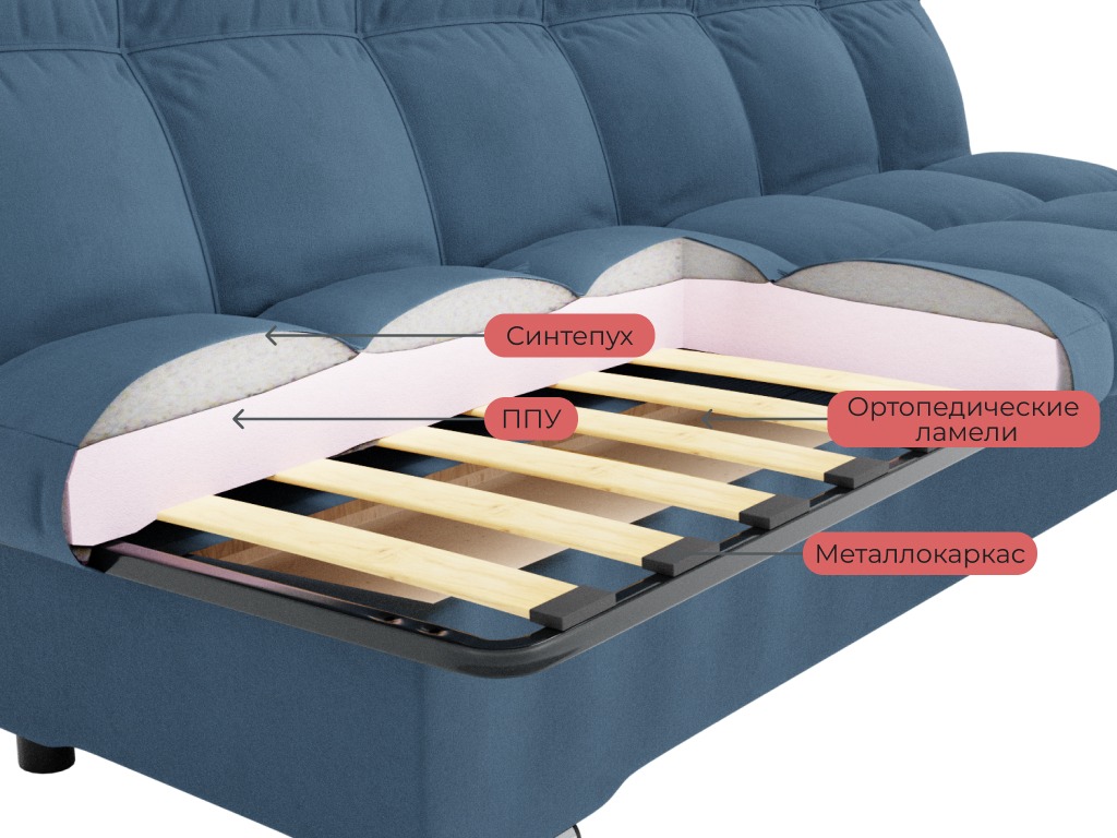 Задняя стенка дивана выполнена из ткани основы;